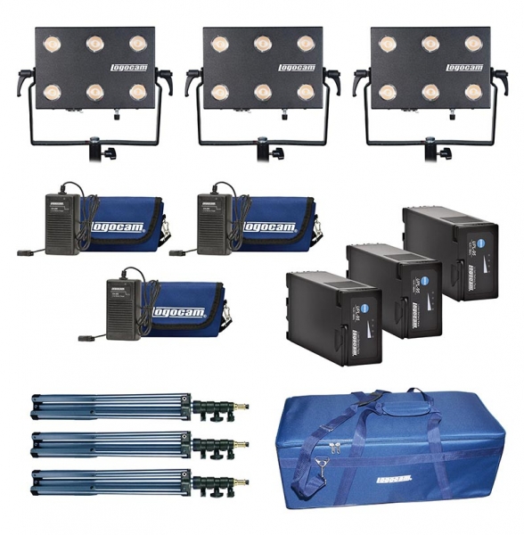 Автономный компактный осветительный комплект Logocam A-LED 1500 DIM KIT оптимален для съемок на выезде или в любом месте, где работа от сети нежелательна или невозможна. Состоит из трех компактных светодиодных светильников Logocam LED Light mini U со световым потоком, эквивалентным мощности галогенного светильника 800 Вт. В качестве источников питания используются 3 аккумулятора UPL-65 с комплектом питания Logocam PK-3(X). Возможна работа от сети 220 В (блоки питания идут в комплекте). Поставляется в транспортировочном кофре с водоотталкивающей пропиткой. Время автономной работы не менее 2 ч. Масса комплекта 17 кг.