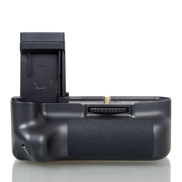 Батарейная ручка Phottix BG-1100D серии Премиум для цифровых фотоаппаратов Canon 1100D. Повышает скорость съёмки и увеличивает вдвое время автономной работы. Эргономичная конструкция рукоятки батарейного блока позволяет более удобно держать фотокамеру при съёмке в вертикальном положении. В качестве источника питания блока используются две специальные аккумуляторные батареи LP-E10. Для удобства съёмки вертикальных кадров, на рукоятке расположены дополнительная вертикальная спусковая кнопка затвора.