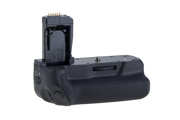 Батарейный блок для камеры Canon EOS 750D 760D. Повышает скорость съёмки и увеличивает время автономной работы. Эргономичная конструкция рукоятки позволяет более удобно держать фотокамеру при съёмке в вертикальном положении. В качестве источника питания используются одна или две аккумуляторные батареи LP-E17. Для удобства съёмки вертикальных кадров, на рукоятке расположены дополнительная спусковая кнопка затвора, кнопка включения автофокуса, а также диск управления. Имеется встроенный разъём для крепления штатива. Аккумуляторы LP-E17 в комплект не входят. Вес: 0,8 кг. Совместимость: Canon EOS 750D 760D |