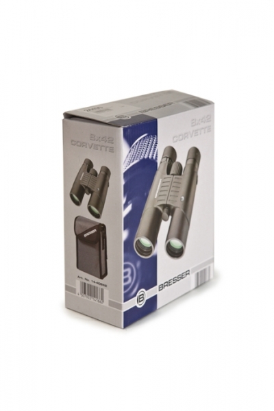 Пластиковый легкий корпус бинокля Bresser Corvette 8x42 имеет резиновое покрытие и мягкие резиновые наглазники, обеспечивающие удобство в наблюдениях. Для корректировки межокулярного расстояния достаточно повернуть оптические трубы относительно центра их соединения. А опция коррекции диоптрийной силы окуляров и выдвижные наглазники позволят людям, носящим очки, без проблем пользоваться биноклем.