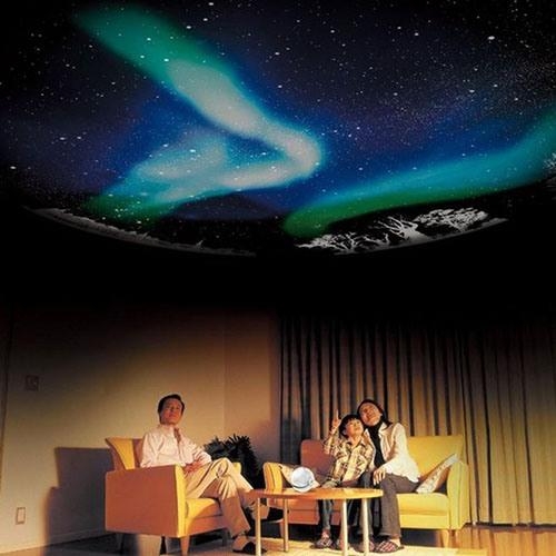 Планетарий "HomeStar Aurora" отличается от аналогов тем, что проецирует не обычное звездное небо, а настоящее "световое шоу": сначала Вы увидите величественное зрелище предзакатного небосвода, когда часть неба еще подсвечена, а на другой уже сверкают звездные россыпи, затем солнце погаснет и звезды загорятся еще ярче, а в финале Вам откроется и вовсе потрясающее зрелище — северное сияние, картина, доступная только жителям Заполярья.