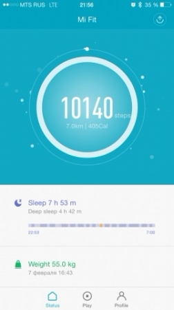 • Приложение для мобильного устройства Mi Fit ведёт сравнительную статистику вашей активности по дням, неделям и месяцам, в которую входит средние количество шагов, дистанция и время в движении за день;