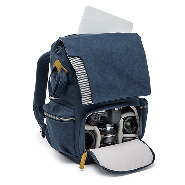 Новая Средиземноморская коллекция. Сочетание глубокого синего цвета со светло-серымии полосками и вставками из натуральной кожи добавляют нотку свежести и создают оригинальный стиль каждой сумке. Небольшой двухзонный рюкзак. Верхняя часть предназначена для различных аксессуаров и личных вещей. Нижняя защищенная часть (13х22х17 см) для зеркальной камеры с установленным объективом, дополнительного объектива и вспышки. В спинке рюкзака расположен отсек для 13` ноутбука. Два боковых кармана на молнии. Ремень для фиксации небольшого штатива. Мягкая спинка рюкзака и эргономичные лямки обеспечивают комфортное использование. Размеры внешние 40х28х19 см, внутренние 38х26х17 см.