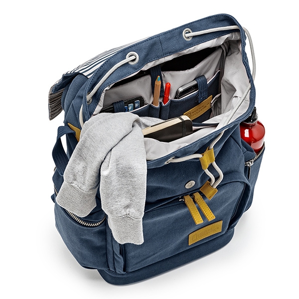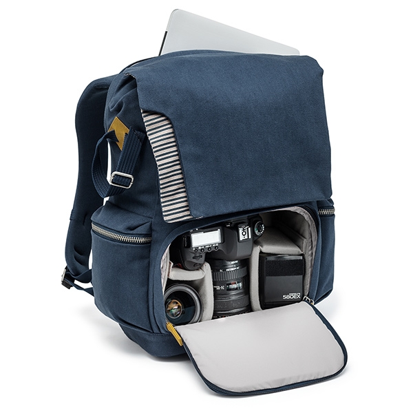 Новая Средиземноморская коллекция. Сочетание глубокого синего цвета со светло-серыми полосками и вставками из натуральной кожи добавляют нотку свежести и создают оригинальный стиль каждой сумке. Средний двухзонный рюкзак. Верхняя часть предназначена для различных аксессуаров и личных вещей. Нижняя защищенная часть (13х25х21 см) для зеркальной камеры с установленным объективом, дополнительного объектива и вспышки. В спинке рюкзака расположен отсек для 17` ноутбука. Два боковых кармана на молнии. Ремень для фиксации небольшого штатива. Мягкая спинка рюкзака и эргономичные лямки обеспечивают комфортное использование. Размеры внешние 45х32х19 см, внутренние 43х30х15 см.