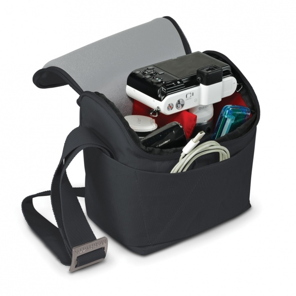 Небольшая плечевая сумка может разместить беззеркальные камеры со съемным объективом или компактные DSLR камеры, дополнительный объектив. Есть небольшие карманы для личных вещей и небольших аксессуаров.