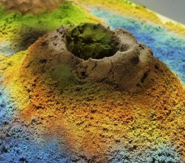 • Вулкан. Воспроизведение извержения вулкана со звуковым эффектом, при построении горы из песка и проделывания углубления по центу вершины. Извержение огня и пепла, стекание лавы по склонам горы.