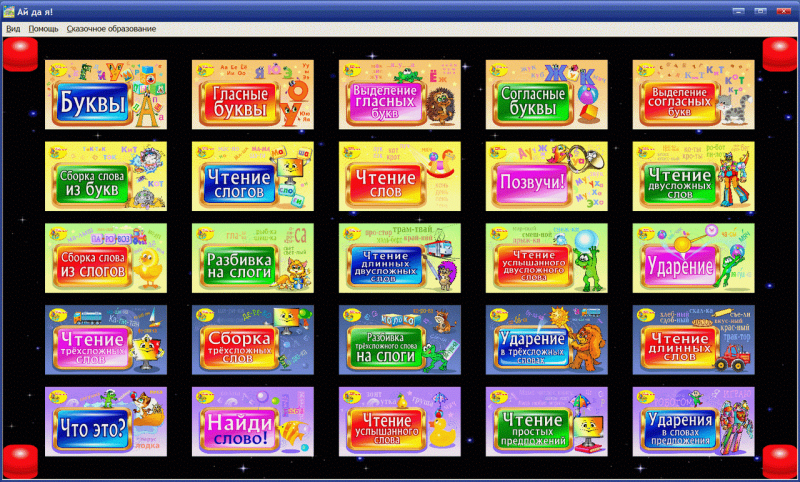 «Ай да Я!» - это комплект интерактивных обучающих программ для индивидуальных и групповых занятий взрослых с детьми 5-7 лет. Программы имеют интуитивно понятный для детей интерфейс, адаптированный для использования на устройствах с сенсорными экранами. Комплект содержит множество игровых заданий разного уровня сложности и многочисленные версии их выполнения. Кроме игр в комплект включены тренажёры с упражнениями по русскому языку и математике для подготовки будущих первоклассников. По тематике комплект разделён на четыре блока: Чтение, Счет, Игры и Рисование.
