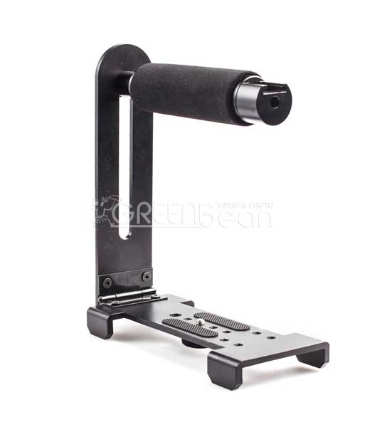 Очень популярная модель кронштейна для DSLR камер, используемая в экшн-съемках. Все элементы конструкции сделаны из металла, ручка обтянута поролоном, при эксплуатации не вращается. Имеет крепление «холодный башмак» для вспышки, микрофона, LED-осветителя и пр. Конструкция разборная, складная. Площадка для камеры имеет 8 отверстий 1/4 дюйма и 1 отверстие 3/8 дюйма, что позволяет с помощью крепежного винта найти наиболее правильное положение камеры на кронштейне, а также закрепить дополнительное оборудование, или установить всю конструкцию на штативе.