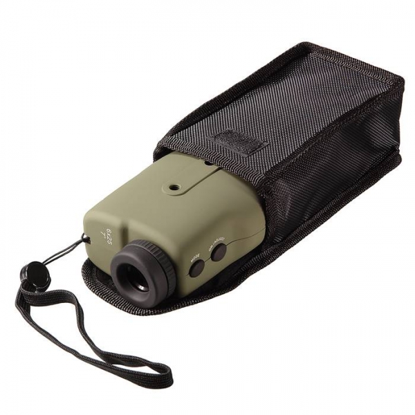 Легкий, компактный и недорогой дальномер из семейства Veber. Очень удобно лежит в руке, кнопки управления - под указательный и безымянный пальцы. Покрытие - soft-touch цвета "милитари". Имеет 4 режима измерения: 1. обычный, 2. в дождь, 3. туман, 4. расстояние до объекта больше 150 метров. Уникально малое ближнее расстояние для измерения - всего 5 метров. Две кнопки управления: ON/ADJUST - для включения прибора и проведения измерений, MODE - для изменения режимов работы, в зависимости от погодных условий и смены единиц измерений (ярды/метры). Качество измерений оценивается количеством "пеньков", высвечивающихся вместе с показаниями на ЖК-дисплее. С подсевшей батареей или без батареи, может использоваться как простой монокуляр с увеличением 6х и ближней точкой фокусировки 5 метров. Окуляр с удаленным выходным зрачком, с возможностью диоптрийной подстройки. Выдвигающийся наглазник для удобства наблюдения в обычных или солнцезащитных очках.