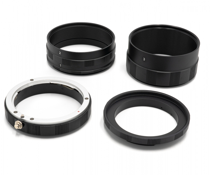 представляют собой цилиндр, который ставится между фотоаппаратом и объективом. Объектив удаляется от сенсора, что позволяет ему сфокусироваться ближе. Удлинительные кольца выпускаются для многих байонетов и резьбовых стандартов крепления объективов. Тем самым вы можете получить большое количество новых предметов съёмки на имеющемся оборудовании. Они не вносят дополнительных оптических элементов между предметом и сенсором камеры, таким образом минимизируя потенциальные потери качества изображения. С помощью макроколец вы можете создавать фантастические макро-фотографии, не покупая дорогостоящие макрообъективы. Набор состоит из макроколец разной длины, которые по отдельности или в сочетании позволяют делать фотографии на близком расстоянии. Чем больше колец будет добавлено, тем ближе будет фокус и тем выше увеличение.