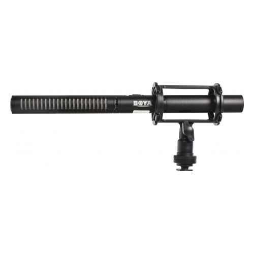 Микрофон Boya BY-PVM1000 Компактный направленный микрофон-пушка, для эксплуатации с DSLR и видеокамерами, а также с портативными рекордерами. С целью сужения направленности производитель значительно увеличил длину микрофона. В результате этот микрофон очень качественно снимает звук в зоне захвата и абсолютно не восприимчив к посторонним шумам за ее пределами. Переключаемый фильтр 80Гц высоких частот в значительной степени расширяет возможности Boya BY-PVM1000. Устройство комплектуется ворсистой ветрозащитой и антивибрационным креплением с возможностью установки на штатив или "горячий башмак" камеры. Бестрансформаторная система позволила минимизировать паразитические наводки и шумы. Корпус изделия выполнен из прочного и легкого алюминиевого сплава. Универсальная система питания позволяет использовать как фантомное питание через разъем XLR, так и питание от стандартных батарей. Целый ряд удачных инженерных решений, а также качество используемых материалов и сборки гарантируют безотказную работу устройства на протяжении долгого времени. Данная модель заслужила популярность среди репортеров и людей занимающихся профессиональной записью звука в театрах, либо на съемочных площадках.