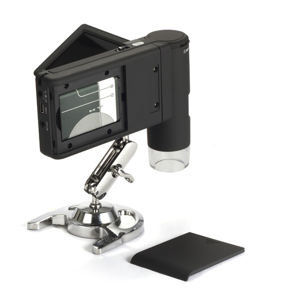 Микроскоп оснащен функцией фото- и видеозаписи. Результаты съемки записываются на карту памяти microSD. Для того чтобы передать снимки и видео с карты памяти на компьютер, достаточно подключить устройство через стандартный USB-кабель, входящий в комплект поставки. С микроскопом также поставляется программное обеспечение, позволяющее редактировать записи и производить точные измерения расстояний, углов и радиусов с погрешностью не более 1 мкм.