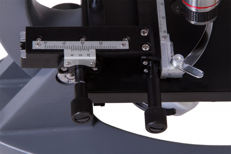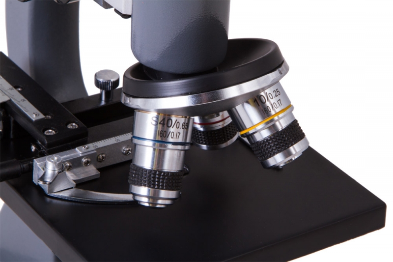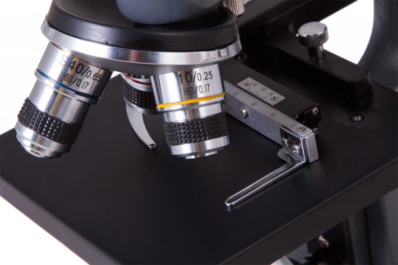 Оптическая схема Levenhuk 7S NG состоит из трехгнездного револьверного устройства, установленных объективов разной кратности и двух окуляров. Последние устанавливаются в окулярную трубку и позволяют регулировать увеличение и поле зрения микроскопа. Образцы для исследований размещаются на предметном столике. Он снабжен препаратоводителем, который позволяет перемещать микропрепараты по двум направлениям – оси Y (вперед-назад) и оси X (вправо-влево). Для настройки резкости используются ручки грубой и точной фокусировки. Корпус микроскопа сделан из металла. Он прочен, надежен и долговечен.