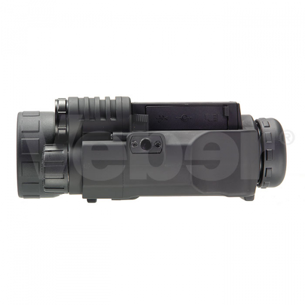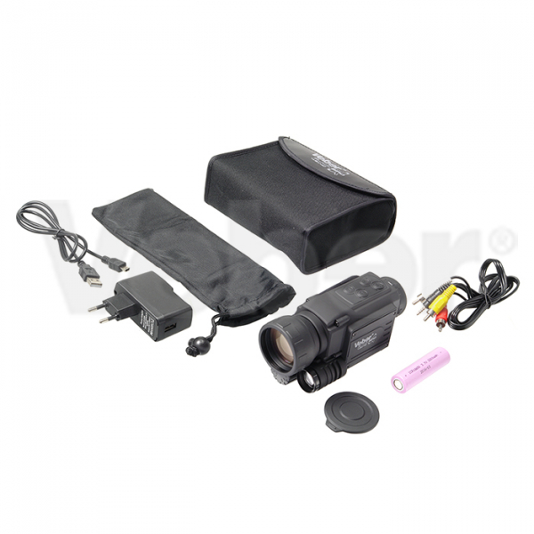 Цифровой монокуляр ночного видения оборудован встроенным видеорекордером, который позволяет делать цветные фотоснимки и записывать видеоролики со звуком и максимальным разрешением 640x480 пикселей. Все изображения сохраняются на карту памяти microSD, файлы можно перенести на компьютер с помощью кабеля miniUSB.