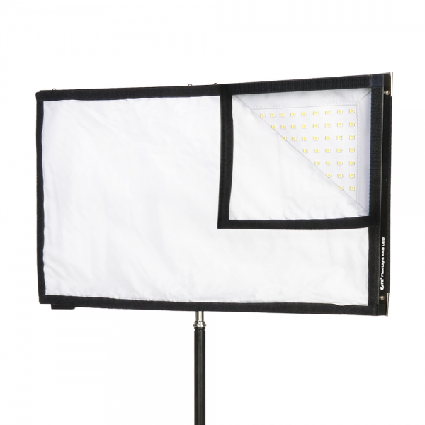 Рассеивающий экран быстро крепится к каркасу и не искажает цветовую температуру светодиодов. Экран является частью модульной системы и может использоваться с каркасом отдельно от светодиодного мата для смягчения жесткого света, как с искусственными, так и с естественными источниками освещения. В сочетании с рассеивателем рамочный каркас образует аналог студийного софтбокса или диффузионной панели.
