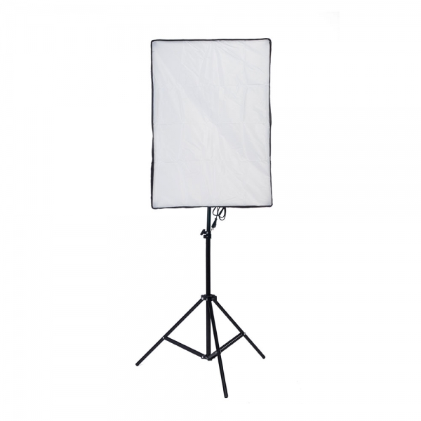 В комплект входит прямоугольный световой модификатор размером 50х70 см, поддерживаемый 4-мя стальными спицами, которые устанавливаются в осветитель KeyLight 518 и формируют монолитную конструкцию. Внутри софтбокса находится фактурная серебристая ткань, спереди на липучки крепится рассеиватель. Софтбокс создает мягкое рассеянное освещение без резких теней. Входящий в комплект софтбокс предназначен для использования только с осветителем KeyLight 518 и светодиодными лампами.