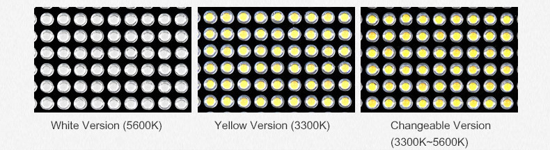 • Три модели для выбора нужных световых эффектов - White Version (5600K), Yellow Version (3300K) и Bi-color (3300K-5600K)