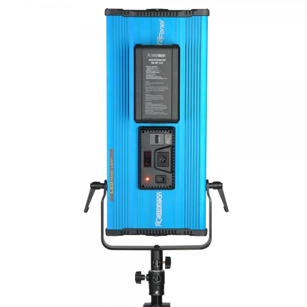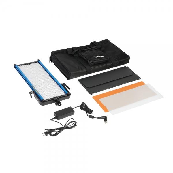 Поворотная лира с возможностью смещения вдоль корпуса, позволит установить осветитель на стойку или подвесить на потолочные системы крепления. Бесшумная конвекционная система охлаждения обеспечит продолжительную работу прибора и не помешает записи звука при съемке. Питание от сети или от аккумулятора V-mount, для возможности использования как в студии, так и на выездных съемках. В комплекте фильтры (3200К и белый рассеивающий), шторки, адаптер питания и сумка для транспортировки.