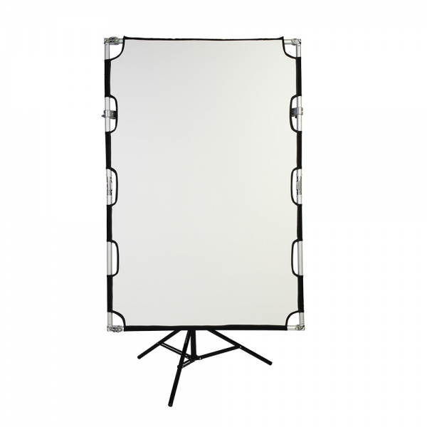 Отражатель на раме GreenBean ReflectPanel 5 RP1015 складной Отражатель на сборной раме GreenBean ReflectPanel 5 RP1015 предназначен для управления освещением в самых сложных ситуациях, подходит для использования как в студии, так и на локации. Используется для подсветки отраженным светом от основного источника деталей, расположенных в тенях или наоборот, уменьшения светового потока с помощью черной ткани, а также для сглаживания светотеневого рисунка с помощью просветной ткани. Размер рамы 100х150 см, 5 в 1: просветный, серебристый, черный, золотистый, белый. Складная конструкция отражателя состоит из прямоугольной рамы-каркаса, изготовленной из легкой алюминиевой 25 мм трубки. Рама имеет четыре шарнирных соединения в углах и по одному шарниру с фиксацией в разложенном положении на каждой из длинных сторон. Чехол из просветного белого материала или чехол с четырьмя разными отражающими поверхностями натягиваются на собранную раму. Чехлы прошиты по периметру тесьмой и имеют отверстия для установки рукоятки-растяжки. Для установки отражателя на стенд или другой держатель, на С-образной рукоятке расположен установочный палец диаметром 17 мм. В комплекте поставляется удобный чехол на молнии для хранения и транспортировки отражателя, размер чехла 110х16х16 см.