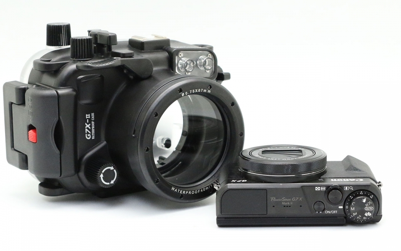 Подводный бокс (аквабокс) Meikon для фотоаппарата Canon Powershot G7x II Подводный бокс (аквабокс) для цифрового фотоаппарата Canon Powershot G7x II. - глубина погружения 40 метров, при изготовлении использованы материалы - прочный поликарбонат, закаленное стекло, нержавеющая сталь. К боксу предусмотрено подключение внешних подводных вспышек через оптоволоконный кабель, а также подсоединение насадок и фильтров. Бокс прошел сертификацию IPX8 & CES. Все боксы прошли проверку в барокамерах.