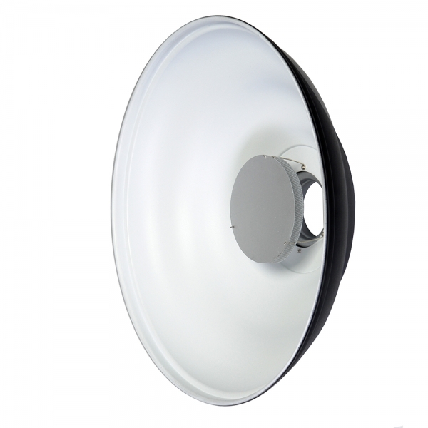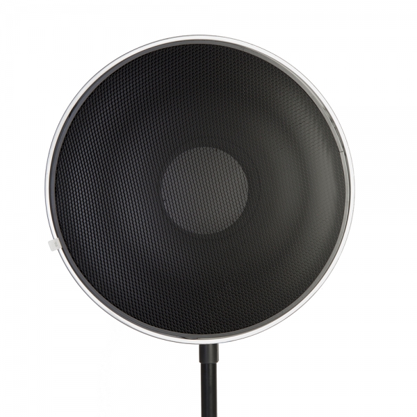 Портретная тарелка Falcon Eyes SuperSoft SR-60W white с сотами Falcon Eyes SuperSoft SR-60W – это комплект модификатора света, включающий 22-дюймовую белую портретную тарелку с алюминиевым дефлектором, дополнительный перфорированный дефлектор, нейлоновый диффузор, сотовую насадку 60° и кольцо с байонетом Bowens (152 мм). Новая форма тарелки захватывает свет и фокусирует его с максимальной эффективностью. Независимо от того в каком направлении световые лучи покинули осветитель, в тарелке новой формы они все равномерно перенаправятся на объект съемки. Белая отражающая поверхность формирует мягкий рассеянный световой поток, такой эффект может потребоваться в портретной съемке. Регулируемый дефлектор устанавливается в двух положениях, что позволяет выбирать результат действия тарелки. С дополнительным нейлоновым диффузором можно получить отличный инструмент для бестеневой предметной съемки. Также, установив перфорированный диффузор, можно добавить немного прямого света к мягкому отраженному от стенок и получить дополнительные возможности для работы на открытом воздухе при ярком солнечном свете.