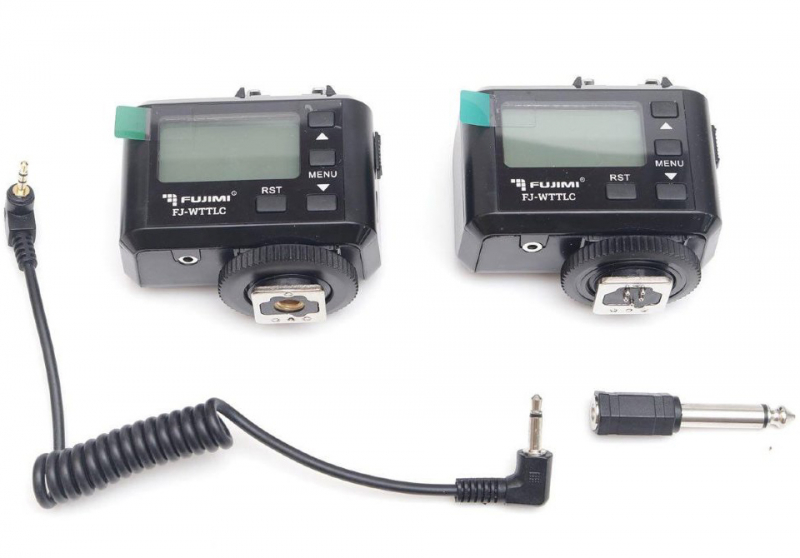 Радиосинхронизатор Fujimi FJ-WTTLC с поддержкой E-TTL Поддерживаемые функции продукта будут зависеть от используемой камеры и вспышки. Для вспышек без функции дистанционного управления через меню камеры требуется ручная установка параметров вспышки. Возможно дистанционное управление студийными вспышками и вспышками для работы на улице, а также студийными беспроводными вспышками при помощи синхрокабеля для ПК, но потребуется ручная настройка режима и выхода вспышки