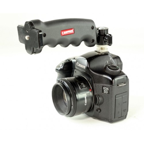 Новая модель рукоятки для камеры Camtree Hunt CH-PGH – единственная среди своих аналогов на сегодняшний день, которая оборудована широкой площадкой. Рукоятка изготовлена из высокопрочного пластика. Она очень удобна для работы с небольшими камерами, так как обеспечивает их прочную фиксацию и помогает предотвратить нежелательную тряску в кадре. Площадка с прорезиненным покрытием обеспечивает прочное прилегание к камере, предотвращает ее соскальзывание. Оборудована 20 отверстиями для крепежных винтов 1/4”. К рукоятке прилагается удобное крепление треугольной формы, которое позволяет закрепить ее на ремне.