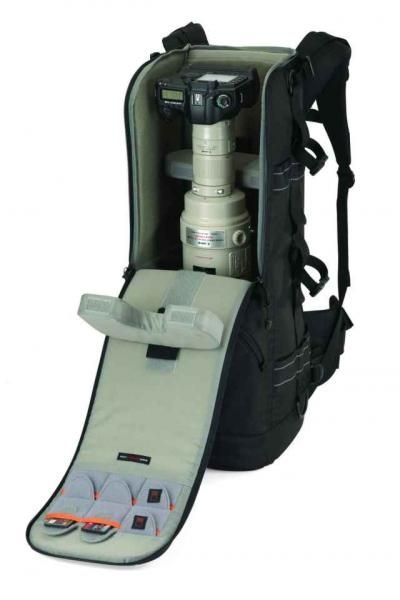 Этот специализированный рюкзак разработан для использования в любых условиях, от природного заповедника до переполненного стадиона. Основное отделение вмещает профессиональную зеркальную камеру со сменным телеобъективом на 600 мм или фиксированным объективом на 800 мм. Регулируемая система ремней обеспечивает подгонку по фигуре, включает подбитую спинную прокладку с поддержкой на уровне поясницы. Спускающаяся застежка-молния обеспечивает полный доступ к оборудованию.