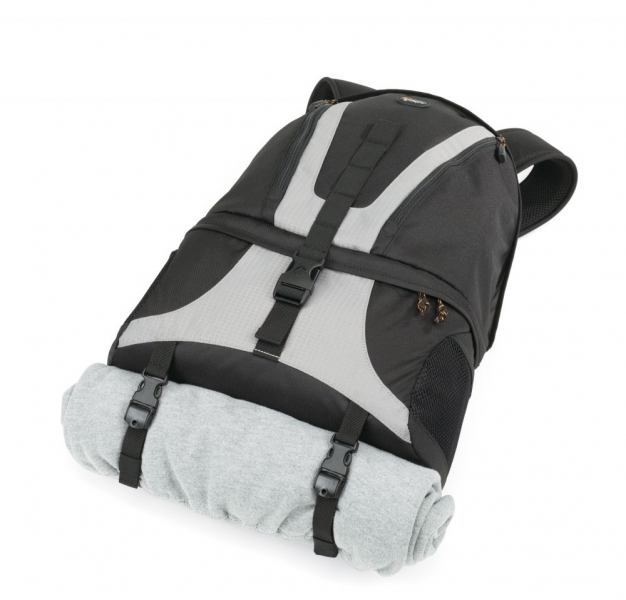 С внешней стороны фоторюкзак LowePro Orion DayPack 200 имеет два дополнительных кармана, застегивающихся на молнию. Лямки, прикрепленные к дну рюкзака, снабжены замками-клипсами, позволяющими переносить верхнюю одежду или штатив.