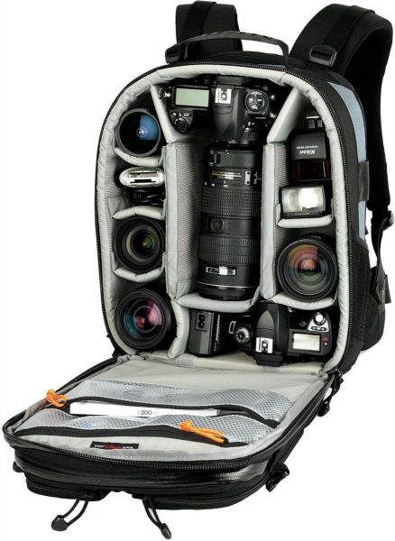 Серия рюкзаков Vertex AW, разработанная для профессиональных фотографов и фотожурналистов, специально ориентирована на использование в путешествиях. Прочная непротирающаяся и водоотталкивающая ткань рюкзака обеспечивает долгий срок службы и надежную защиту от внешних механических повреждений. Модель имеет водонепроницаемую застежку молнию и защитный чехол All Weather Cover™, которые надежно защитят оборудование от попадания влаги и пыли. Внутренне пространство рюкзака моделируется при помощи передвижных перегородок, что позволяет подогнать рюкзак под любую комплектацию фотооборудования. Вместимость Lowepro Vertex 100 AW: 1-2 профессиональные камеры или среднеформатная система; 3-5 объективов до 200 мм F/2.8, штатив, вспышка и электронные аксессуары. Размер отделения под ноутбук: 28х5х35 см. Система регулируемых плечевых ремней эргономичная, подгоняется под индивидуальные потребности и благодаря этому значительно снижает нагрузку на позвоночник даже при полной загрузке рюкзака. Два внешних передних кармана позволяют хранить все аксессуары в одном месте. Специальный крепежный механизм позволяет закрепить штатив: трипод, монопод или ледоруб.
