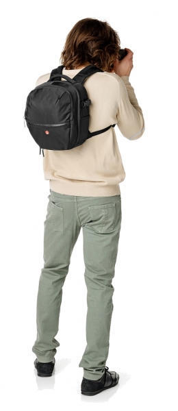 Маленький функциональный и эргономичный рюкзак для оборудования. Размещение: зеркальная фотокамера с установленным стандартным объективом, два дополнительных объектива 24-70 и 50 мм, вспышки и другие аксессуары. Двойная молния обеспечивает быстрый и комфортный доступ к оборудованию. В передней части крышки расположен отсек для мелких предметов, таких как визитные карточки, салфетки, телефон, бумажник, ручки, кабели и пр. Мягкие внутренние разделители. Чехол от дождя и солнца в комплекте. Характеристики