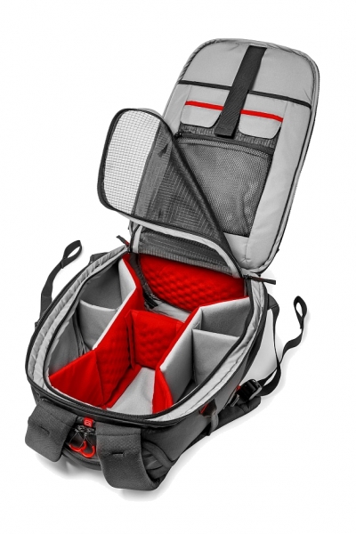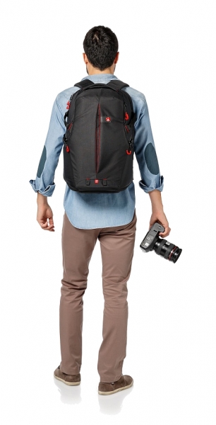 Новая разработка компании Manfrotto – облегченный и максимально защищенный рюкзак Red Bee-210 серии Pro Light. Эта модель является идеальным решением для переноски большого количества оборудования, а именно: две фотокамеры с установленными объективами, два дополнительных объектива, вспышки и другие аксессуары. Съемные мягкие разделители, разработанные с использованием Manfrotto Protection System, позволят удобно и эргономично расположить необходимое оборудование. Сетка на молнии закрывает основной отсек. Отделение для планшета и ноутбука расположено у спинки рюкзака. Для оперативного доступа к фотокамере предусмотрены два боковых и один верхний карман. Комплектуется фирменным дождевым чехлом и внешним креплением для штатива.