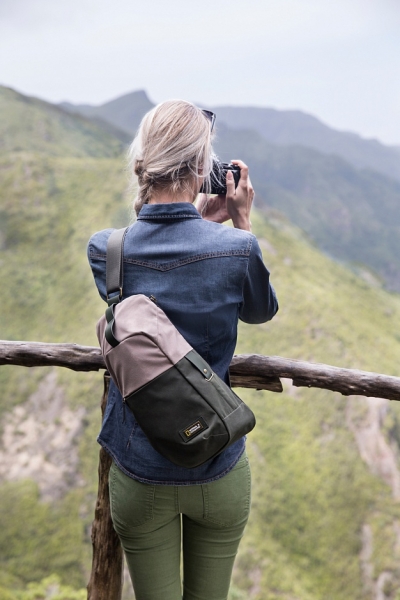 Новая коллекция сумок Тропический лес выполнена в винтажном стиле. Как всегда, производитель уделил большое внимание качеству изготовления и материалам. Повседневный рюкзак-слинг предназначен для фотокамеры и личных вещей. Имеет много легкодоступных карманов. Эргономичный дизайн делает рюкзак очень удобным в ношении. Специальное боковое отверстие обеспечивает быстрый и легкий доступ к камере. Эта модель так же оснащена мягким съемным кофром для защиты фотокамеры. Характеристики