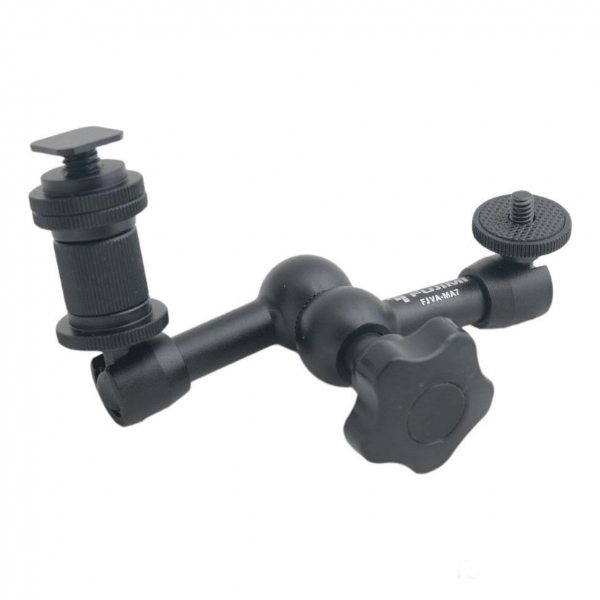 FujimiMagic Arm применяется для установки ЖК дисплеев, вспышек, ламп и пр. Эргономичный дизайн, всего одна ручка, для фиксации всех позиций. Прочная конструкция с ручкой фиксации контроля, создано для того что бы сделать ваши руки свободными, а так же упрощает монтаж, размещение и регулировку любых накамерных аксессуаров. Для крепления к камере, используется стандартный разъём типа «башмак» |