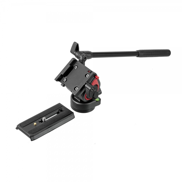 Съемная видеоголовка имеет независимые фиксаторы панорамирования и наклона, оборудована механизмом контрбаланса и жидкостного демпфирования. Благодаря демпфированию все движения происходят плавно и без рывков, а механизм контрбаланса уравновешивает камеру. На быстросъемной площадке находится винт 1/4" для установки камеры и противоскользящие резиновые вставки. Для управления камерой предусмотрена удлиненная рукоятка, которая крепится к головке через зубчатый механизм, препятствующий прокручиванию. Головка крепится к штативу с помощью винта 3/8".