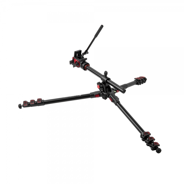 Специальный механизм, расположенный в основании штатива, позволяет наклонять центральную колонну на угол до 180° и поворачивать её относительно оси основания штатива. Такое положение установленной на площадку камеры удобно для макросъемки или предметной съемки. При переводе колонны в горизонтальное положение не требуется разборка или применение ключей.