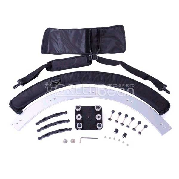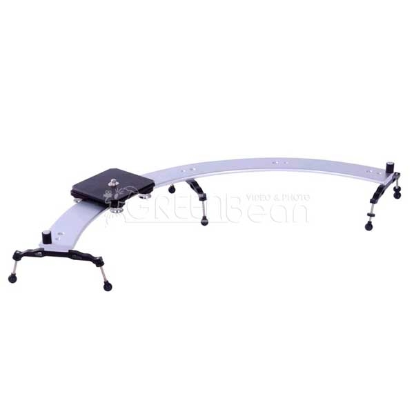 Представляем портативный слайдер GB SL 1/3, имеющий радиусную направляющую длиной дуги 85 см и радиусом 82 см по внешней стороне. Подвижная площадка перемещается на 4-х роликах с прецизионными подшипниками качения. Две опоры подшипников из четырех оборудованы эксцентриковыми механизмами регулировки. С их помощью выбирается зазор между направляющей и роликами, а также регулируется усилие перемещения каретки площадки по направляющей. Слайдер укомплектован регулируемыми по высоте опорами, позволяющим установить его на неровную поверхность. На подвижную площадку можно установить камеры DV, камеры DSLR форматов с функцией видеозаписи. Также глайдтрек можно установить на штатив, для чего предусмотрены посадочные места с резьбой 1/4 дюйма и 3/8 дюйма. Слайдер укомплектован футляром для переноски с наплечным ремнем. Площадка с роликами, ножки, набор ключей находятся в отдельном футляре.