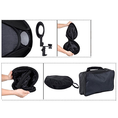 Складной софт-бокс для на камерных вспышек идеальное решение для выездной или strobist – съемки. Быстро складывается (размер в сложенном виде в чехле около 17 см) и легко собирается, упаковывается в компактную сумку (идет в наборе) и менее чем за минуту готовится к фотосъемке. Софтбокс дает мягкий и ровный заполняющий свет преобразуя жесткий свет фотовспышки. Универсальные размеры софтбоксов оптимальны для использования в любых студиях, на выезде, дома. Подходит для съемки любых объектов, в портретной или предметной фотографии. В комплекте: