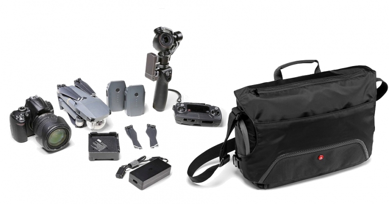 Сумка Befree Messenger оснащена внутренним карманом для переноски штатива Befree (размер кармана 10х40х10 см). Съемные мягкие разделители, разработанные с использованием Manfrotto Protection System, не только позволят удобно и эргономично расположить необходимое оборудование, но и надежно защитят вашу фотокамеру, объективы, вспышку и пр. Второй вариант размещения: зеркальная фотокамера с установленным объективом, дрон DJI Mavic Pro (дрон, контроллер, две батареи и зарядное устройство) и стабилизатор DJI Osmo. В сумке предусмотрено специальное отделение для ноутбука, размером до 15 дюймов, отделение для документов, личных вещей, так же имеется множество удобных карманов для различных аксессуаров. Дополнительная молния в верхней части сумки обеспечивает быстрый и удобный доступ к содержимому. Сумка комплектуется регулируемым плечевым ремнем с удобной противоскользящей накладкой и фирменным дождевым чехлом