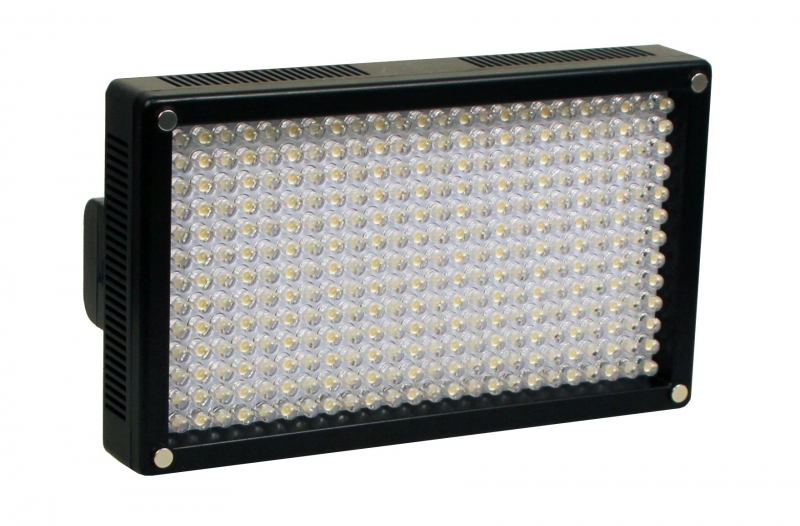 Светодиодный накамерный светильник. В качестве источников света используются 312 светодиодов. Светодиоды подобраны таким образом, чтобы обеспечивать стабильную цветовую температуру. Корпус выполнен из прочного пластика. Встроенный диммер позволяет плавно менять световой поток в пределах от 10 до 100%. Светильник оснащен площадкой для крепления аккумуляторов типа UPL-15/47. Время автономной работы 1,5 часа. Светильник оснащен разъемом для питания от камеры. Шаровая головка позволяет закрепить устройство в любом положении.