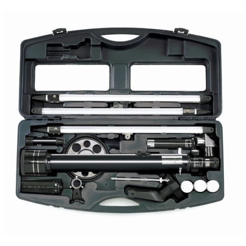 Телескоп комплектуется удобным кейсом для хранения и транспортировки. Кейс надежно защищает телескоп и аксессуары от пыли и механических повреждений, а телескоп в кейсе не занимает много места при хранении в квартире. В сложенном виде телескоп в кейсе легко переносится в одной руке, а небольшие габариты позволяют перевозить его даже общественным транспортом.