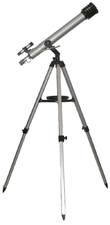 Технические характеристики Тип телескопа: рефрактор Оптическая схема: ахромат Покрытие оптики: полное многослойное Диаметр объектива (апертура), мм: 60 Фокусное расстояние, мм: 700 Светосила (относительное отверстие): f/11,6 Проницающая способность (звездная величина, приблизительно): 11 Способ фокусировки: перемещением окуляра Окуляры в комплекте: Н20 мм, H4 мм Посадочный диаметр окуляров, дюймов: 0,96 Линза Барлоу в комплекте: 3x Искатель: оптический, 5x24 Фильтры в комплекте: лунный фильтр Тренога: алюминиевая Тип управления телескопом: ручной Тип монтировки: азимутальная Дополнительно: редуктор фокуса 1,5х Уровень пользователя: для начинающих, для детей Предмет наблюдения: планеты солнечной системы Комплект поставки: