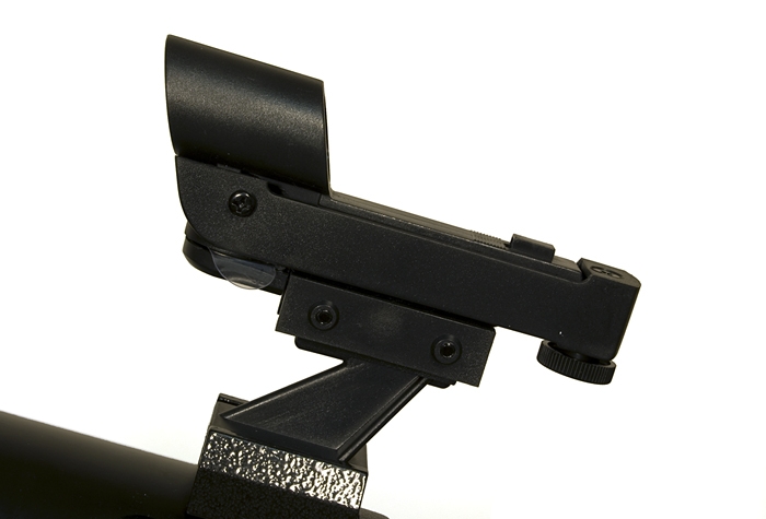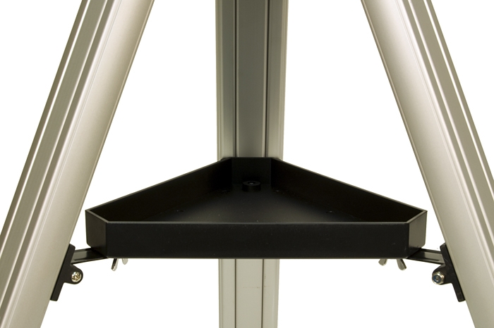 Линзовые поверхности телескопа имеют просветляющее покрытие, которое обеспечивает максимальное светопропускание, а отражающие – защитный слой, увеличивающий срок их службы. Очень компактная и легкая алюминиевая труба установлена на экваториальную монтировку, оснащенную ручками тонких движений и допускающую установку электропривода часовой оси (приобретается отдельно). Такая монтировка имеет специальные координатные круги, с помощью которых, после несложной настройки, можно находить объекты по их экваториальным небесным координатам, а также сопровождать суточное движение объекта вращением только одной ручки. Тренога регулируется по высоте и имеет удобную полочку для принадлежностей, а коллиматорный искатель с красной точкой позволит быстро навести телескоп на нужный участок неба. С телескопом поставляются 2 окуляра, имеющие поле зрения 52 градуса и фокусные расстояния 10 мм и 25 мм и дающие с телескопом увеличение 125 и 62 крат. Линзы окуляров изготовлены из стекла и имеют многослойное просветление. Фокусировка выполняется подвижкой главного зеркала с помощью удобной ручки с плавным ходом. Посадочный диаметр под окуляры стандарта 1,25” (31,75 мм) позволяет использовать с телескопом множество других имеющихся на рынке окуляров, помимо входящих в комплект. С их помощью увеличение телескопа может быть поднято до полезного предела в 180 крат. На выходной втулке имеется стандартная Т-резьба, которая, через дополнительное переходное кольцо, позволяет присоединять к телескопу зеркальную фотокамеру и производить съемку Луны и других ярких объектов.
