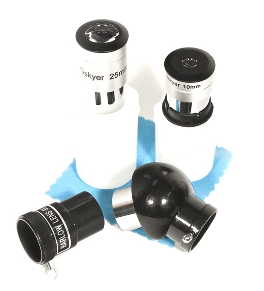 • Поставляется в комплекте с двумя сменными окулярами (10 мм и 25 мм), линзой Барлоу 3х, искателем 5х24