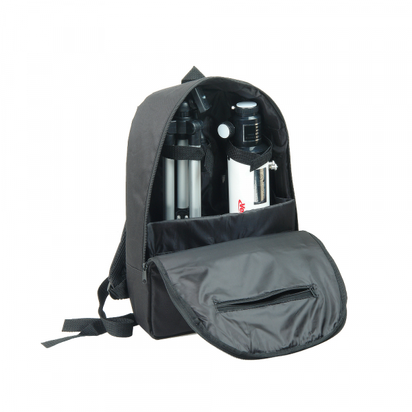 Весь комплект находится в рюкзаке. Бережное размещение трубы, треноги и комплекта принадлежностей обеспечивают мягкие амортизирующие стенки, карманы и фиксирующие стяжки.