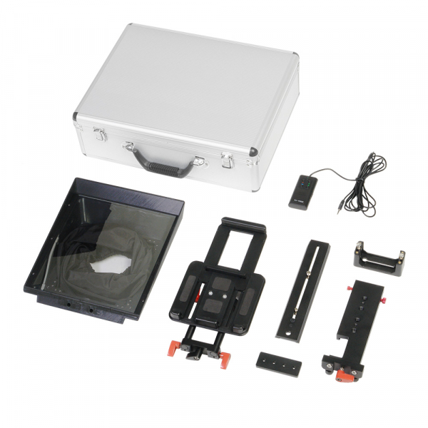 Тубус для зеркала изготовлен из пластика путем термовакуумной вытяжки. В задней части тубуса имеется текстильный чехол, который защищает объектив камеры от паразитной засветки студийными осветителями.