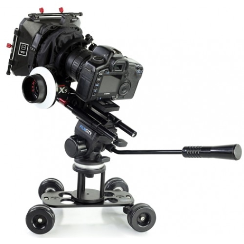 Это устройство представляет собой мини-тележку для съемки, позволяющую получать плавное движение в кадре. Тележка устанавливается на любую ровную горизонтальную поверхность. В отличие от других, более громоздких конструкций, при своих небольших размерах занимает меньше пространства. Быстро разбирается и собирается, легко настраивается.