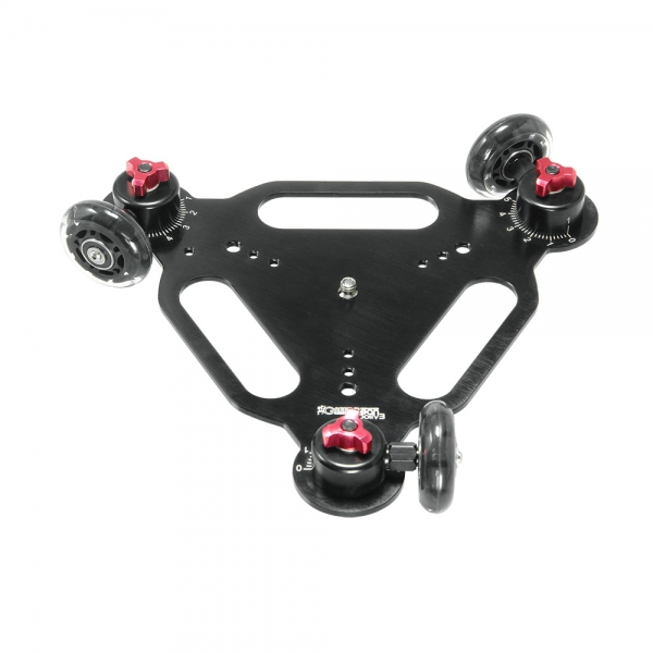 Тележка операторская GreenBean Dolly 03 GreenBean Dolly 03 - трехколесная операторская тележка предназначена съемки плавных проводок в кадре по прямой траектории, дуге или кругу в 360° с различными радиусами. Часто тележку Dolly 03 используют для различных видов видеосъемки, иногда ей можно заменить слайдер (если позволяет поверхность). Шарикоподшипники из нержавеющей стали внутри колес обеспечивают плавное движение. Колеса затягиваются, ослабляются и могут быть сняты, также их можно установить в требуемые согласованные положения в соответствии с маркировкой по шкале вокруг каждого колеса. Каждое колесо имеет свой номер (1, 2, 3), это поможет легко вернуться к нужной траектории после перерыва в съемках. Ручки и маркировка удобно расположены на верхней поверхности, а не на нижней или боковой стороне тележки. Толщина платформы 5 мм, три выреза на платформе обеспечивают удобное маневрирование и служат ручками для переноски. Камера может быть прикреплена непосредственно к винту 1/4 дюйма в центре тележки, а для крепления штативной головки прилагается адаптер 1/4" – 3/8". Дополнительные отверстия с резьбой 1/4" и 3/8" на каждом из трех углов позволяют устанавливать шарнирные держатели с подсветкой, микрофонами и другими аксессуарами. Особенностью 3-колесной тележки по сравнению с 4-колесной тележкой является дополнительная возможность достижения 360° проводок вокруг оси камеры. Для работы с тележкой подходит любая ровная поверхность – стол, пол, длинная доска и т.д. Тележка Dolly 03 быстро разбирается и легко настраивается.
