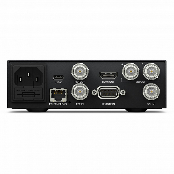 Благодаря разъемам 6G-SDI решение совместимо с любыми камерами, мониторами и SDI-коммутаторами, поддерживая все разновидности SD-, HD- и Ultra HD-форматов вплоть до 2160p/30. Предусмотрены SDI-вход, синхровход и два SDI-выхода, которые можно использовать для двухканального вывода изображения или кеинга. Наличие интерфейса HDMI обеспечивает подключение рекордера к широкоэкранным телевизорам, цифровым проекторам и другой технике. Кроме того, есть порты RS-422 для удаленного управления и Ethernet для загрузки файлов из локальной сети, а также встроенный блок питания 110-240 В. В комплект поставки входит пакет SDK и руководство по эксплуатации с описанием протокола, который позволяет интегрировать HyperDeck Studio Mini с другим оборудованием и программными продуктами.