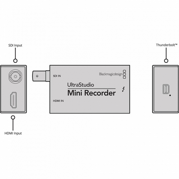 Представляет собой устройство захвата, которое может поместиться в карман, так как обладает лишь SDI- и HDMI-входом, а также Thunderbolt-портом. Просто подключите его к стационарному компьютеру или ноутбуку, и вы можете вести запись с любого SDI- или HDMI-устройства. Интерфейсы Blackmagic UltraStudio Mini Recorder и Monitor обладают лишь по одному разъему HDMI и SDI. На сегодняшний день это самые миниатюрные устройства захвата и вывода видео. Помимо чрезвычайно привлекательной цены эти интерфейсы обладают высоким качеством работы с SD- и HD-сигналом, а также питанием от шины Thunderbolt. Всё, что необходимо для начала работы,лишь подключить их компьютеру. Blackmagic UltraStudio Mini Recorder является SDI- и HDMI-рекордером карманных размеров. Если вам необходимо сверхпортативное устройство захвата и вывода видео для ноутбука или настольного компьютера с портом Thunderbolt, то интерфейсы UltraStudio Mini окажутся для вас идеальным решением.